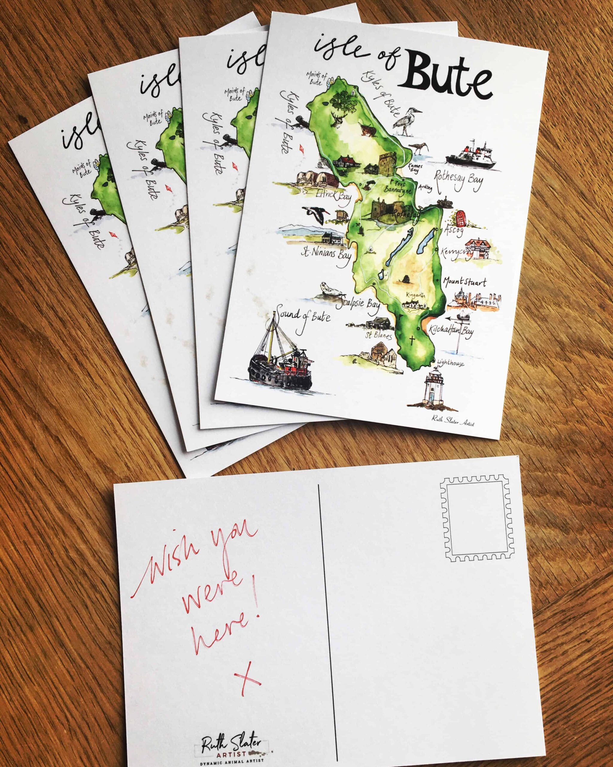 x5 Postcards are printed onto 350gsm card with a matte finish, the reverse has a symbol for a stamp a divinding line and my logo.