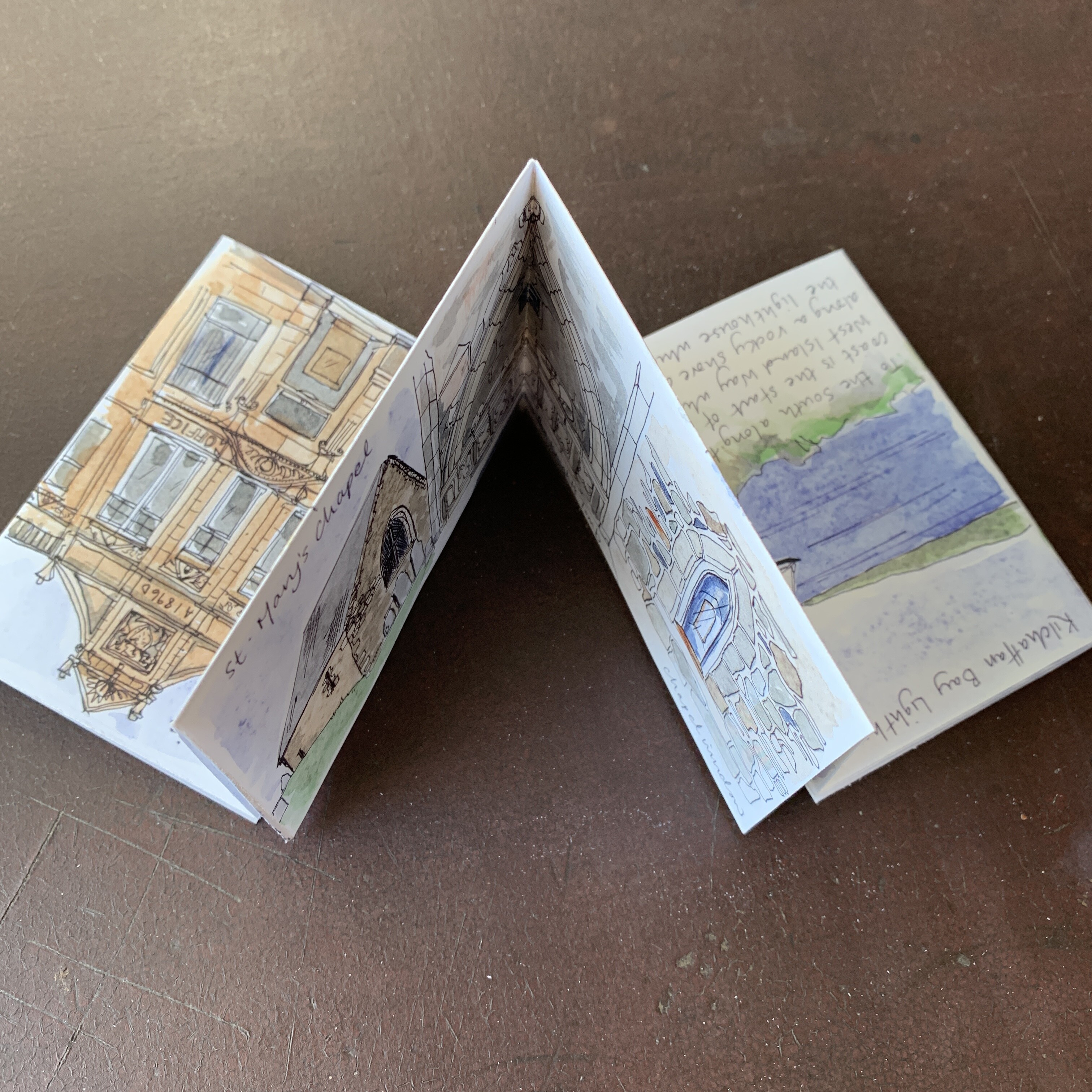 The book features the most iconic buildings and beautiful locations on the island and weighing at only 17g will fit into a standard letter for posting. It opens out to show a full length Mount Stuart House, St. Mary’s Chapel, St. Blanes and Scalpsie Bay.